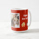 This holiday photo mug features a classic message in a fun Christmas tree shape, gingerbread house and present on a beautiful vivid red background, radiant and full of energy. With a photo on the front , it's a great way to send Christmas cheer to friends and family.