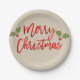 Merry Christmas Red Faux Foil Modern Script Kraft Paper Plates