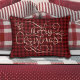 Merry Christmas Red Gingham Tan Script Typography Accent Pillow