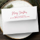 Return address envelope featuring the text "Merry Christmas" in a handwritten style script font with the return address below.