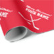 Merry Christmas red hockey player sports Wrapping Paper. Custom name gift wrap rolls with crossed ice hockey sticks and puck. Sporty Holiday design for kids and adults. Also great for Birthday and other occasions.