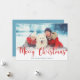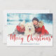 Merry Christmas Red Modern Script Photo Blue Holiday Card