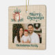 Merry Christmas red photo beige burlap gift box Ceramic Ornament