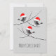 Merry Christmas Red Santa Hat Birds Holiday Card