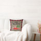 Merry Christmas Red Truck Buffalo Check/Plaid Family Name Throw Pillow with pretty script typography. Buffalo plaid/check and burlap background.
