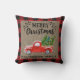 Merry Christmas Red Truck Red Buffalo Check Family Throw Pillow