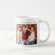 Simple minimal stylish red typography Merry Christmas funny family pictures create your own holiday coffee mug with custom 2 photos, name, year, and your text.