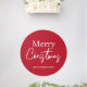 Decorate your living room or den for the holidays with this Merry Christmas Red White Script Family Monogram Round Rug. It is modern minimalist designed with "Merry Christmas" in big white trendy script lettering mixed with simple letters. Customized with family's last name or your custom text. CLICK PERSONALIZE FURTHER TEMPLATE OPTION AND ENTER NAME.