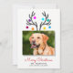 Merry Christmas Reindeer Antler Photo Pet Holiday Card