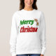 Sweatshirt with Merry Christmas in 3D green and red text and a reindeer. Sweatshirt available for men and women.