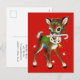 Merry Christmas | Retro Reindeer Candy Cane Holiday Postcard