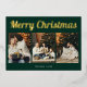 Merry Christmas Retro Script Photo Green Foil Holiday Card