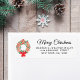 This festive return address label is decorated with a watercolor wreath of gingerbread cookies and foliage.