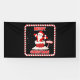 This banner features the phrase "Merry Christmas" in a Gaglin print font with red colored letters white outline with a Santa Claus coming out of the chimney inside of a red/white peppermint candy cane plus snowflakes in the background in this X-mas day style and theme. This banner has single side printing outdoor safe measures 4"x8" made with an elegant matte finish and is both fade and tear resistant for Indoors or outdoor use great for advertise anything, from birthdays to graduation, weddings to anniversaries. Hemmed and thermally welded edges for neat finish outdoor banners can be bought with metal grommets.