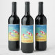 MERRY CHRISTMAS Santa Hat Whimsical Beach Scene Wine Label