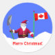 Stickers with my design of Santa Claus standing waist-deep in snow holding a snow shovel and the Canadian Flag beside him with the text, "Merry Christmas!"