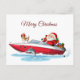 Merry Christmas Santa on the Boat with Dog Holiday Postcard