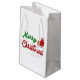 Merry Christmas Santa Sleigh red green script Small Gift Bag