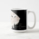 Elegant ivory white and black coffee or cocoa mug with Santa Claus and his sleigh flying across the star-filled night sky being pulled by the team of reindeer in front of a full moon. Personalize with your message, (is it Happy Holidays, Merry Christmas, or something else?) your name and the year. These mugs will make beautiful gifts for family and friends. See our matching greeting card in our shop.