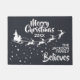 Show how much you believe in the magic of Christmas and Santa Claus with this dark grey Christmas doormat featuring the silhouette of Santa's sleigh in white with his reindeers, flying in a trail of stars.