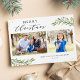 Merry Christmas Script Berries Foliage 2 Photos Holiday Card