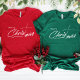 Christmas begins with Christ! Express your Christian faith and values with this beautiful holiday shirt. The design on the Christmas t-shirt features the text "Merry Christmas" in fancy white script lettering. A Christian cross replaces the letter 'T.' A (faux) diamond heart dots the 'i' and completes the inspirational design. A simple but powerful message! Available in various tee shirt colors and shirt styles (example: long sleeve t-shirt, fitted shirt, sweatshirt, and hoodie). Also available in matching men's, children's and infant sizes. Please browse our complete collection of Christian Christmas t-shirts, cards, stickers, wall art, pillows, doormats, and gift ideas. Don't see what you're looking for? Special design requests accepted. Simply contact the designer via the option on the product page.
