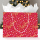Make holiday gifts extra special with a custom name gift bag! This editable template features the greeting "Merry Christmas", and is personalized with the recipient's name, your family name or the holiday year. It has a simple, stylish, and modern design with trendy script fonts, festive trees, snowflakes, and stars. Customized gift bags adds a unique touch, perfect for kids, family and friends. This all-over pattern is available with a matte or glossy finish. Printed colors: deep red, white, and a faux gold effect.