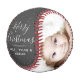 Merry Christmas Script Family Photo Collage Baseball. This modern custom and personalized baseball is a perfect lasting memory gift for the holidays. Personalize it with two of your favorite family photos and names. The background is chalkboard grey and the text is a trendy white script. You can change any text on the baseball or erase it.