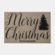 Merry Christmas Script & Faux Burlap Family Name Doormat