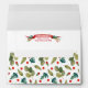 Attractive white envelope with watercolor greenery and holly pattern on back low area as well as decorative stripe on the front. Top back flap with beautiful "Merry Christmas" phrase in red hand written Calligraphy framing your name(s) and return address information. Inside watercolor small greenery element with red banner with two text areas for message giving you the ability to really personalize this design and make it your own. Collection with coordinating products available.