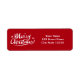 Merry Christmas brush script hand lettering typography return address label. Cute winter Holiday design for your Xmas cards and invites. Red and white hand lettered logo design with personalized address. Elegant template for home or office. Seasons greeting in modern calligraphy style.