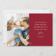 Send Season Greetings with this Modern Script Lettering Photo Christmas Holiday Card. Design features a picture of your choice with a dark overlay on the bottom with white text 'Merry Christmas, & a Happy New Year, family name and year. On the reverse you can add a second photo, cutomize the message and names. The festive red background can be changed to any color.