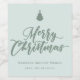 Hand lettered "Merry Christmas" script, bottle labels. Design features, Christmas tree icon accent and two template text lines in chic bay green on mint color background.