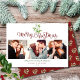Merry Christmas Script Mistletoe 3 Photo Couples Holiday Card