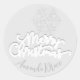 Merry Christmas Script Name Gray Snowflakes White Classic Round Sticker