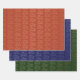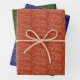 A set of 3 sheets with the phrase "Merry Christmas" written in script into a tiled pattern. The colors are gold on red, silver on blue, and copper on green.