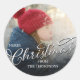 Merry Christmas Script Photo Custom Classic Round Sticker