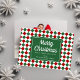 Merry Christmas Script Photo Red Green Checks Holiday Card