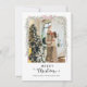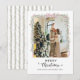 Merry Christmas Script Pink Bow Garland Photo Holiday Card