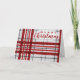 Merry Christmas Script Plaid Red Gray Pattern Holiday Card