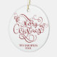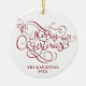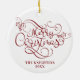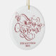 Merry Christmas Script Typography Name Red White Ceramic Ornament