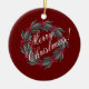 Merry Christmas Script Wreath Pretty Red Ceramic Ornament