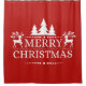 Shower curtain shown in a Red color with a festive holiday Merry Christmas print.