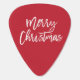 Merry Christmas simple red standard guitar picks with white script text. Unique gift for Christmas...