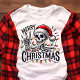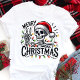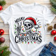 Add a touch of quirky fun to your holiday season with this "Merry Christmas" skeleton tee! Featuring a festive skeleton flashing a peace sign and adorned with Christmas lights, this shirt is perfect for those who embrace a unique and humorous approach to the holidays. It's a great conversation starter and a playful way to express your Christmas spirit. Whether you're attending a casual gathering or simply want to stand out from the crowd, this tee is sure to bring a smile to everyone's face.