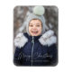 Wish friends and family a Merry Christmas with a cute holiday photo magnet! The magnet features your vertical photo with subtle snow flurries bordering the design. "Merry Christmas" is displayed in a white, trendy calligraphy script with your family's name below.