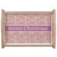 Beautiful colors and a festive theme, this serving tray features a purple background with white snowflakes. With "Merry Christmas" written in white font.