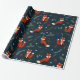 Merry Christmas snowflakes Fox Holly Blue Red Wrapping Paper