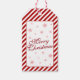 Contemporary deep red stripes and snowflakes holiday gift tags. Personalize the back to and from.