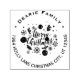 Make your own classic holiday Merry Christmas family monogram return address rubber stamp- Personalized family's last name (or full name) at top in curved, modern lettering with curved return address below. Center is adorned with rustic Christmas typography design that reads 'Merry Christmas' in elegant script. Surrounded by snowflakes and pine greenery. Classic Christmas, personalized family rubber stamp for those that enjoy traditional Christmas designs.